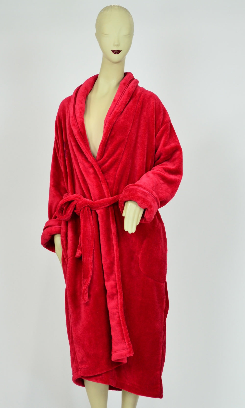 - Pamper yourself with the luxurious Red Fleece Unisex Bathrobe.