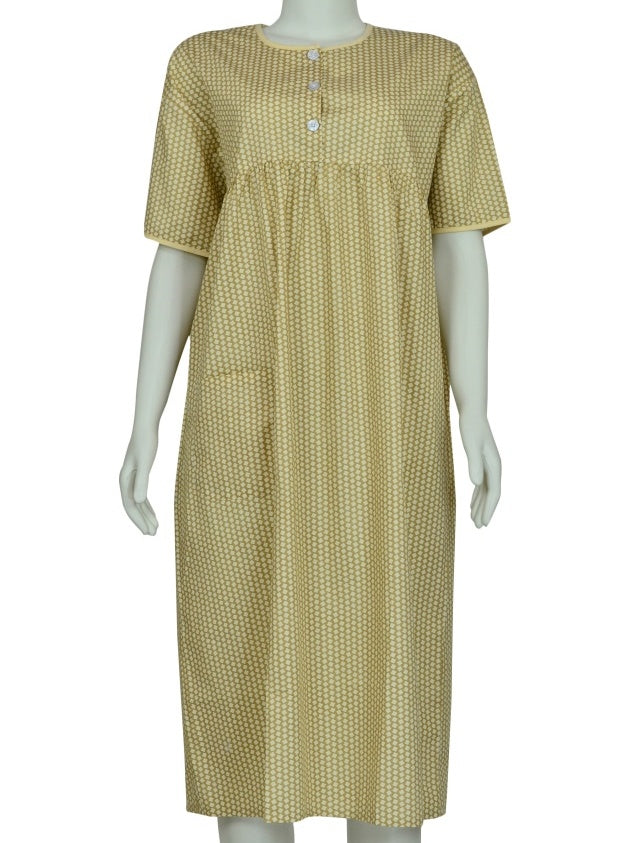 Designed for seniors, this gown combines modesty, comfort, and style. Features include pockets, button/loop openings, and a variety of prints.